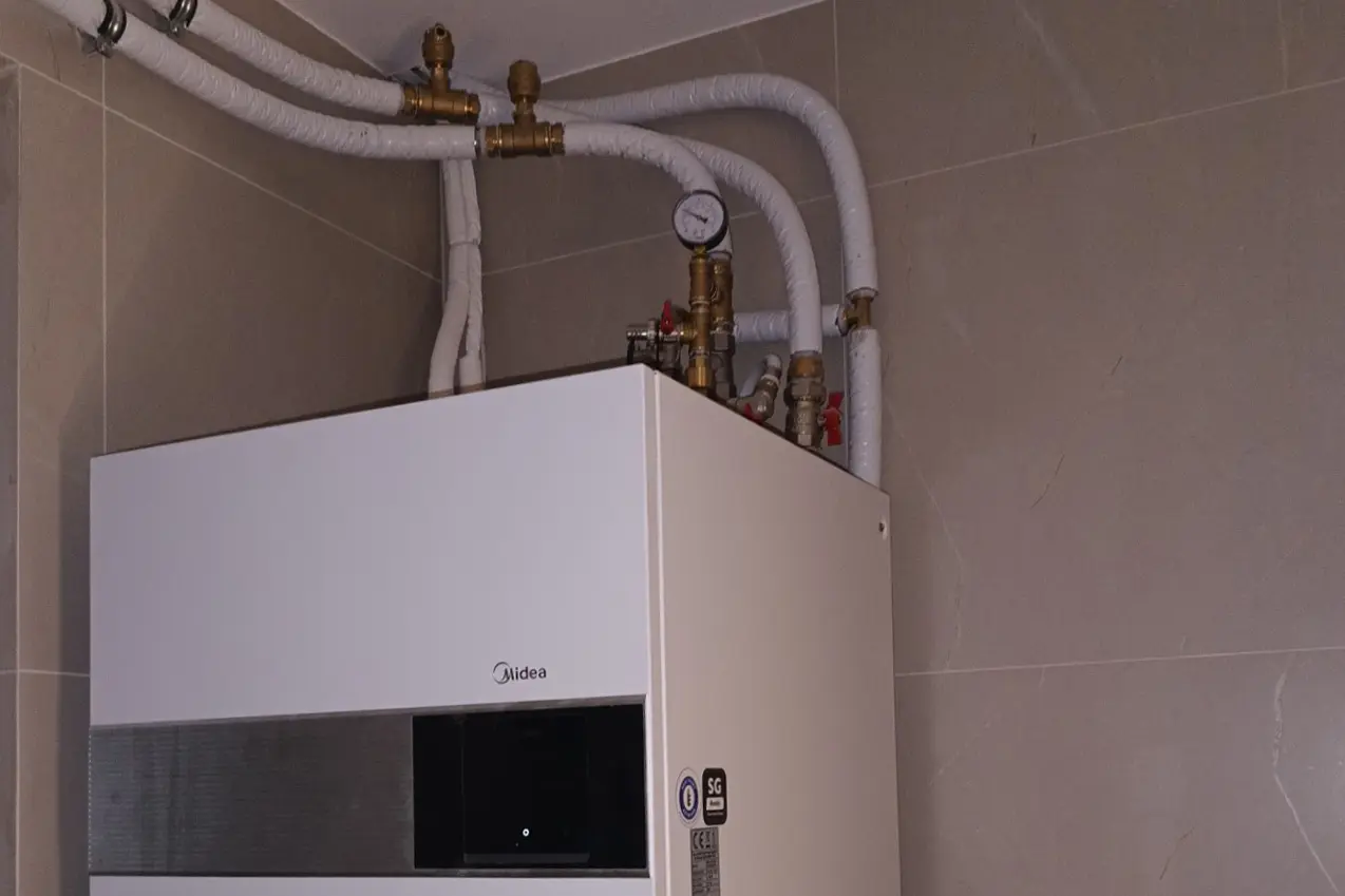 Vieno aukšto, sublokuotame kotedže buvo sumontuotas oro kondicionierius ir šilumos siurblys. Išorinius įrenginių blokus iškėlėme ant stogo. Norint nepažeisti stogo, skyles komunikacijoms išgręžėme atitinkamu kampu sienoje, tarp stogo perkritimo.